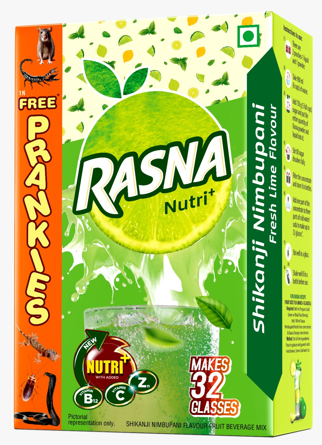 Refresh yourself instantly with Rasna Ghar Ka Nimbu Paani. Each 3g sachet makes a 180...