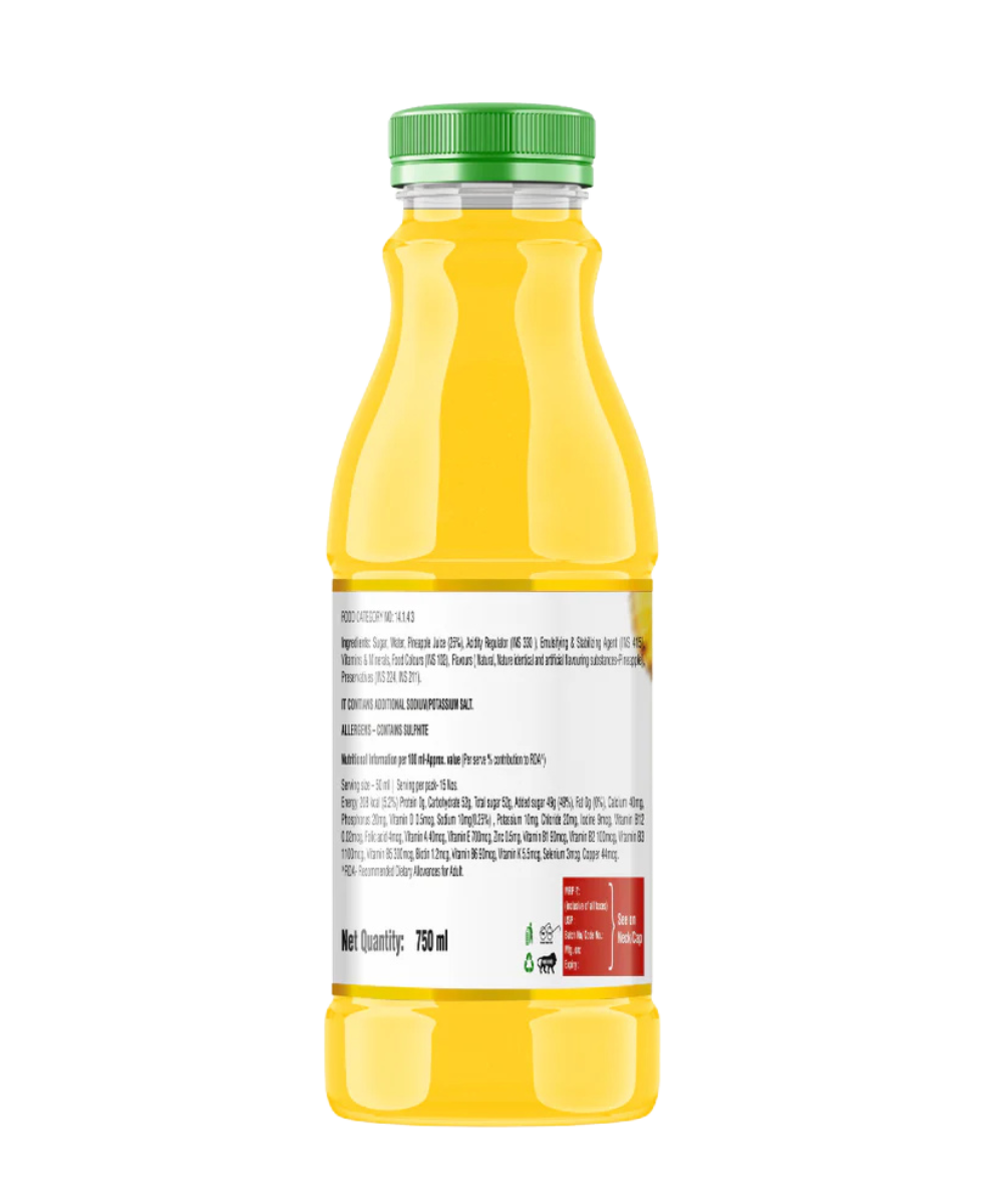 Enjoy the tropical twist of Rasna Power Squash Pineapple in a 750 ml bottle, infused with the sweet and tangy flavour of fresh pineapples. Loaded with essential vitamins, minerals, and glucose, it’s a refreshing treat for every occasion. Proudly Made in India